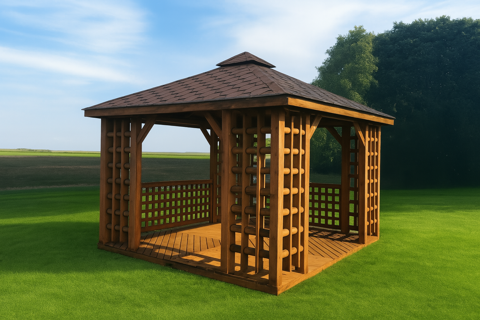 Hampton Classic Series – Rectangular Wooden Gazebos with Floor and Shingle Roof (9–16 m²)